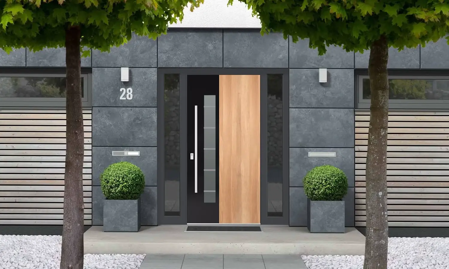 Les portes sans imposte ont un aspect minimaliste, sans obstacles optiques supplémentaires. Les portes avec fenêtre latérale en verre sont dotées d'élégants panneaux vitrés qui introduisent de la lumière naturelle et de l'espace dans la pièce. Les portes à fenêtres latérales pleines se caractérisent par une finition solide, constituant à la fois un élément esthétique et limitant la lumière.