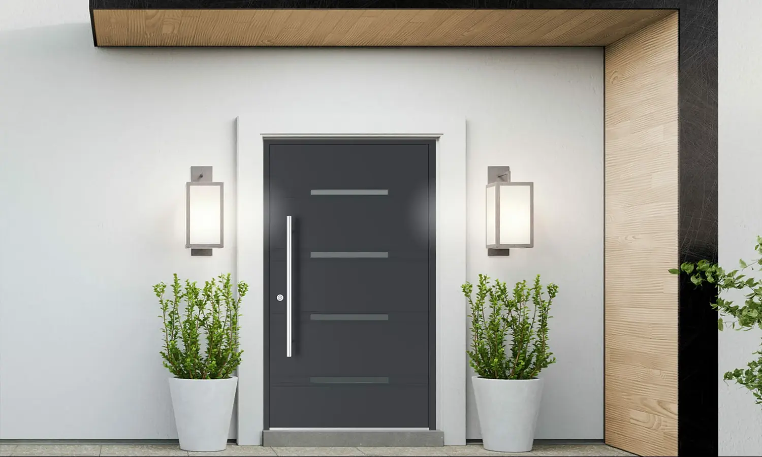 Les portes sans imposte ont un aspect minimaliste, sans obstacles optiques supplémentaires. Les portes avec fenêtre latérale en verre sont dotées d'élégants panneaux vitrés qui introduisent de la lumière naturelle et de l'espace dans la pièce. Les portes à fenêtres latérales pleines se caractérisent par une finition solide, constituant à la fois un élément esthétique et limitant la lumière.