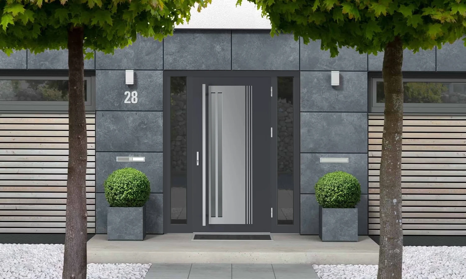 Toutes les options de la gamme Linden 5 sont conçues dans un souci de sécurité et répondent aux normes élevées de la classe d'effraction RC2. La structure de la porte incorpore des compositions de tôle d'acier avec un placage en PVC, ce qui lui confère une résistance aux intempéries et aux UV. Cette combinaison de technologie et d'esthétique fait des portes Linden 1 le choix idéal pour ceux qui recherchent non seulement la durabilité et la fonctionnalité, mais aussi un aspect moderne qui s'intègre à toute architecture.