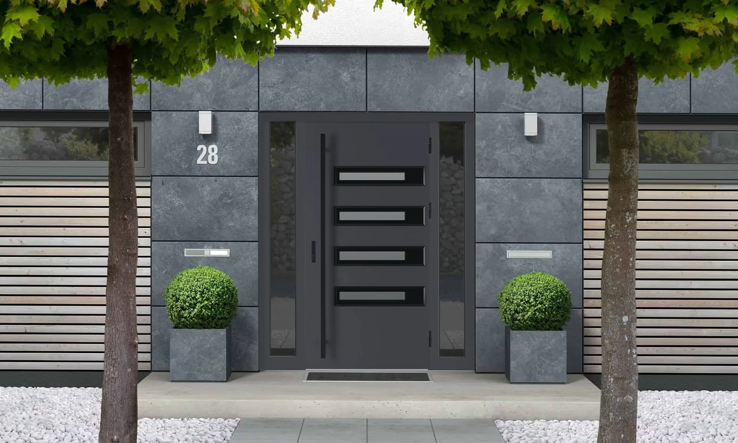 Le modèle de porte en acier Sion 1 allie un design moderne à une durabilité inébranlable pour une apparence esthétique et une sécurité durable. Fabriqués en tôle d'acier avec un placage en PVC, ils sont résistants aux conditions climatiques changeantes et aux rayons UV, ce qui augmente leur durabilité.
