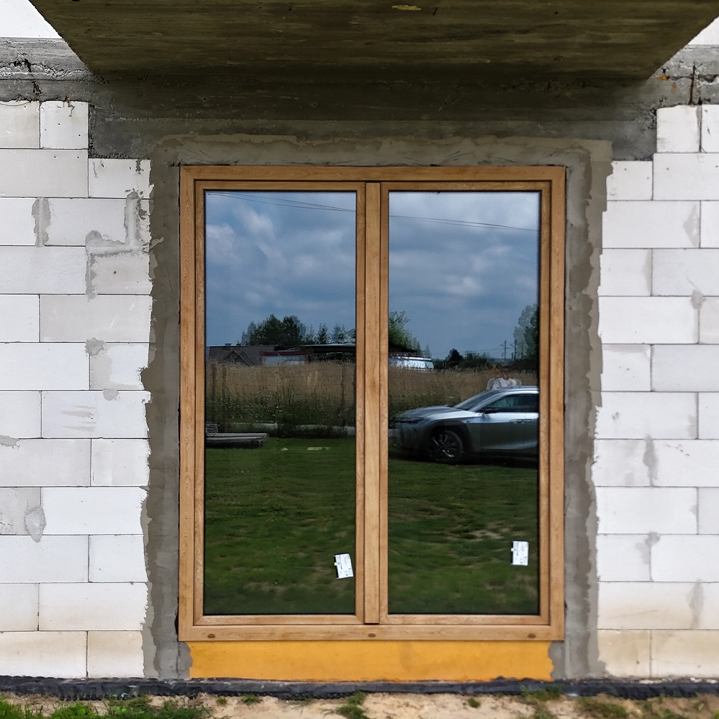 La conception de cette maison individuelle spacieuse, dotée d'un garage confortable, allie l'esthétique moderne à la fonctionnalité, grâce à des solutions de pointe en matière de fenêtres et de portes. Le bâtiment utilise des fenêtres en PVC de la série Synego de Rehau, qui offrent une excellente isolation thermique grâce à des paquets de verre à triple vitrage.